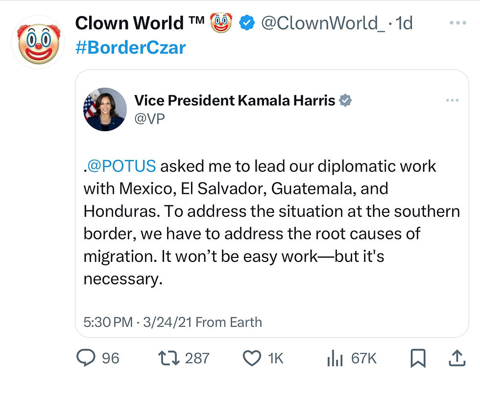 For those playing the semantics game, saying no one ever gave her the official title of Border Czar, my reaction is, “okay, and?” Kamala Harris was in charge of the border. You can call her the Border Queen for all I care. The media commonly referred to her as the Border Czar for years until it wasn’t good for her campaign.