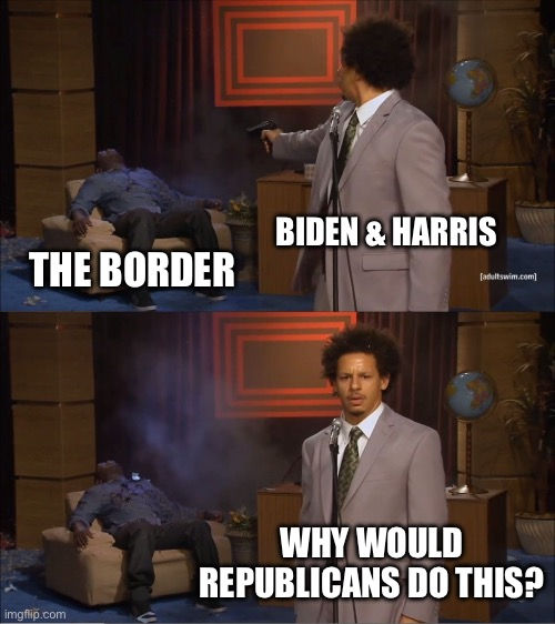 The Biden administration created the border crisis. In Biden’s first hours in office he halted the border wall. In his first two weeks he signed an executive order dismantling Trump’s immigration policies. He ended Remain in Mexico, he reversed Title 42, and cut border funding.